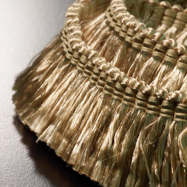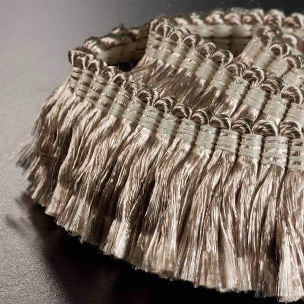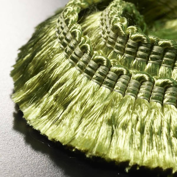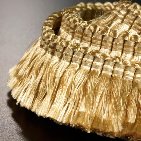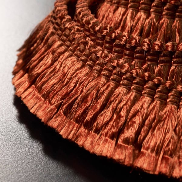 La Franja PIN019 es una pasamanería decorativa, compuesta por hebras brillantes dispuestas con precisión gráfica. Trenzados con cuidado, los hilos forman un conjunto grueso, sedoso y estructurado. La base rítmica se organiza en torno a una trama regular que evoca los adornos textiles tradicionales. Dedar desarrolla un estilo artesanal dominado, marcado por un toque étnico.