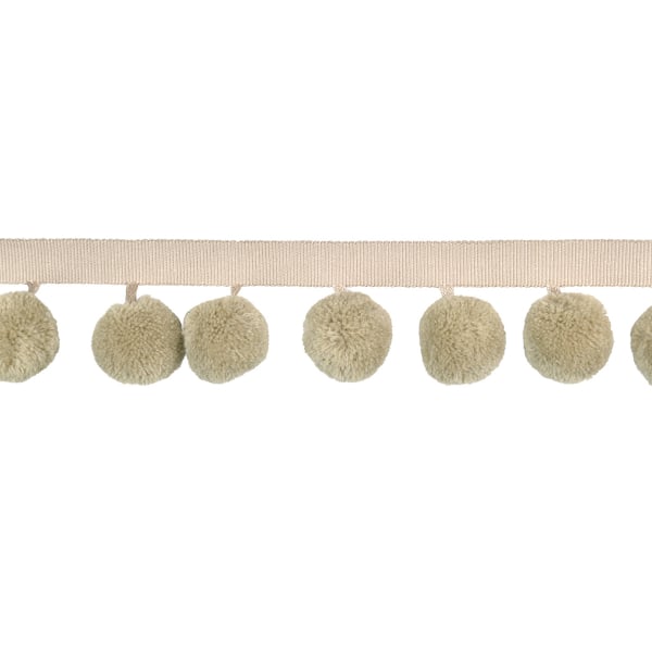 El fleco de pompones Calypso de 55 mm es un adorno marcado por un motivo geométrico ornamental. Este borde decorativo, compuesto por formas esféricas, crea una estética sencilla y estructurada. Los pompones suspendidos de una cinta trenzada dibujan una línea regular y equilibrada. Por su discreta amplitud, la pieza textil expresa un rigor y un saber hacer sutil propios de Houlès.