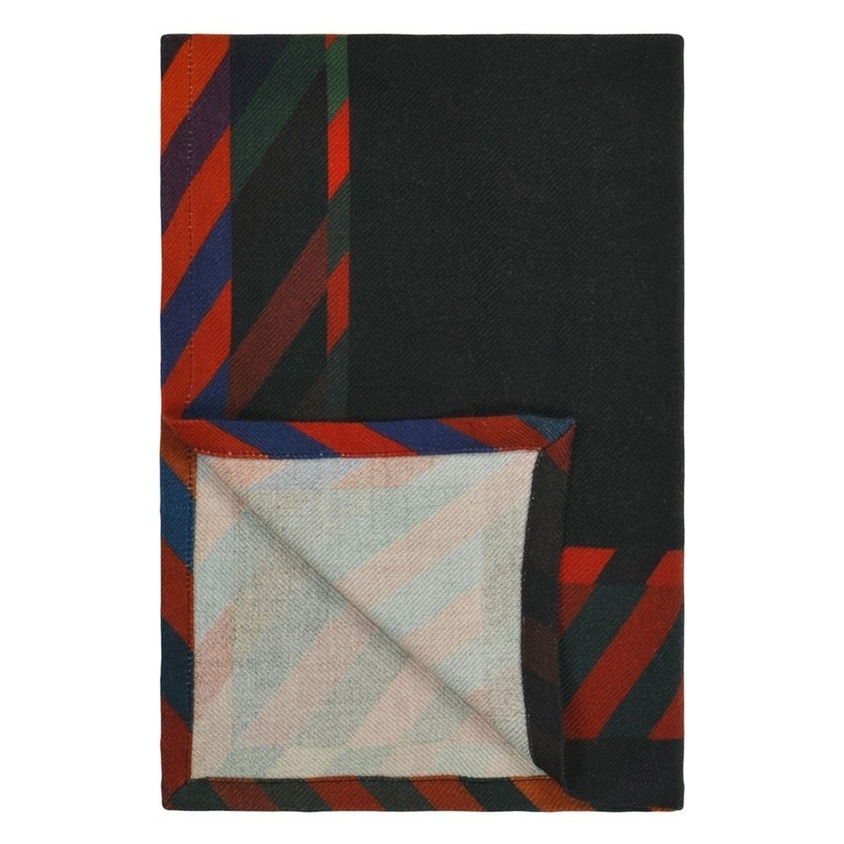 Confeccionado con lana merino, el Do You Speak Lacroix? presenta un estampado grande, atrevido y multicolor. Destaca las grandes letras que componen el nombre del diseñador francés Christian Lacroix. Cada elemento decorado con detalles ornamentales contrasta con el fondo oscuro. El conjunto está enmarcado con franjas policromadas.