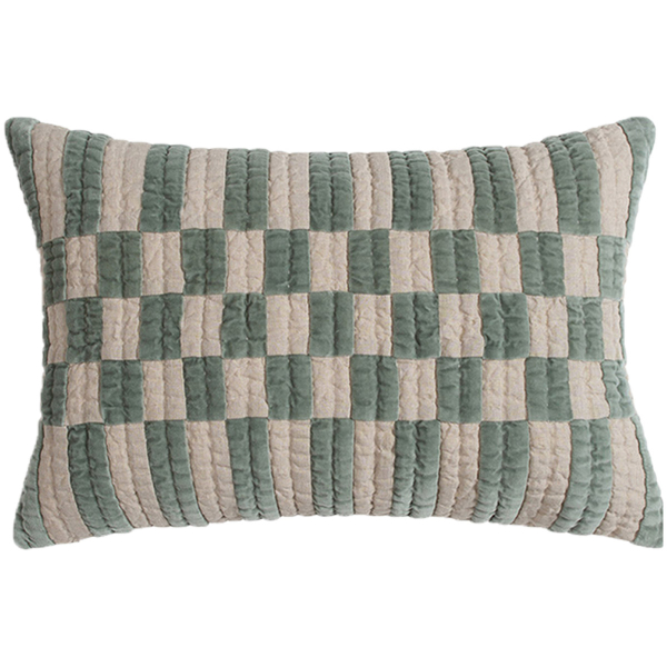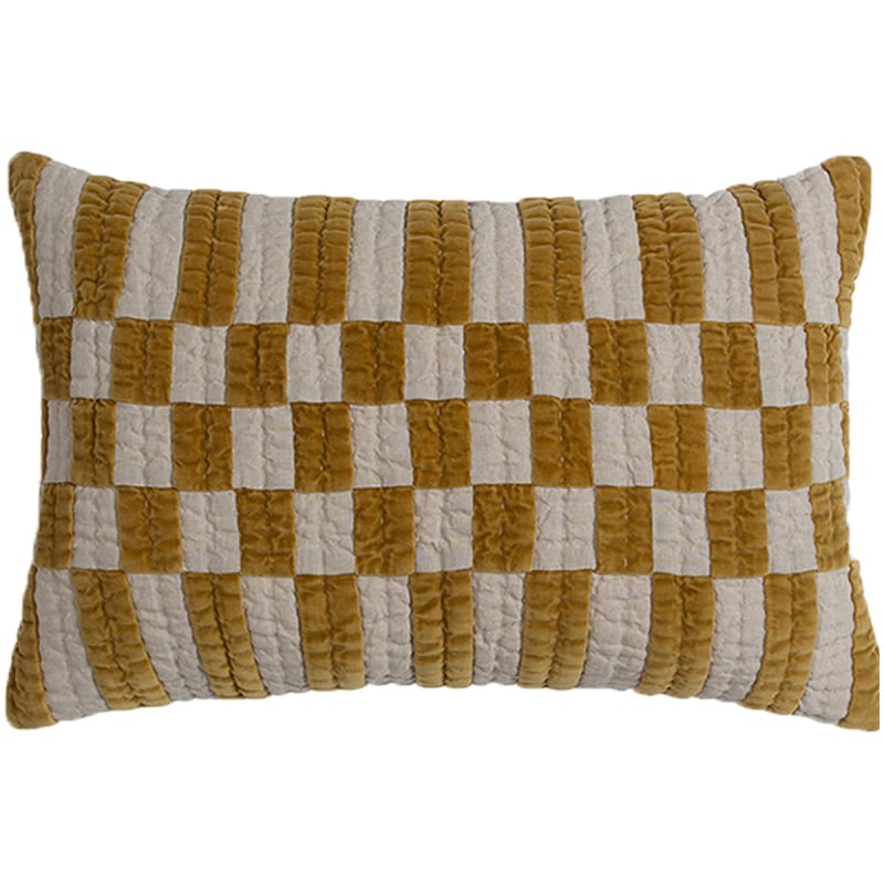 El cojín rectangular Checkerboard presenta un estampado de damero, fruto de un patchwork. El acolchado hecho a mano subraya cada intersección, creando un relieve discreto y refinado. El reverso retoma el lino crudo en toda su sencillez. El formato rectangular acentúa el efecto gráfico y alarga la composición de este modelo de Niki Jones.