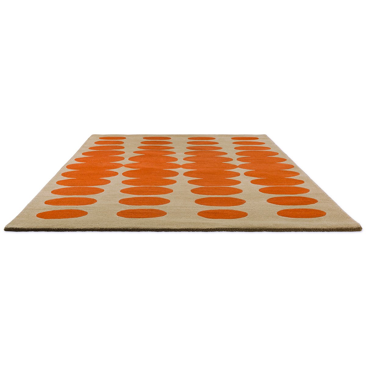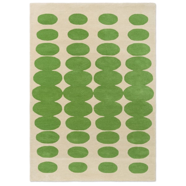 La alfombra Optical Oval presenta un atrevido estampado geométrico, compuesto por óvalos trazados con regularidad. Estas formas, dispuestas simétricamente, crean una repetición rítmica. El conjunto estructurado evoca un lenguaje visual a la vez retro y gráfico. Confeccionada en lana virgen y tejida a mano, esta decoración de Orla Kiely muestra un cuidado artesanal que refuerza la profundidad del diseño.