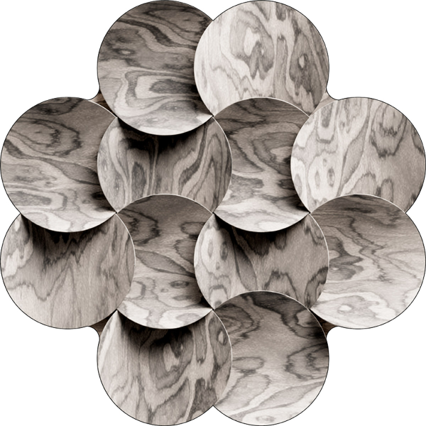 La alfombra Halo Rise presenta un patrón geométrico tridimensional, compuesto por formas circulares en relieve. El impulso escultórico crea un juego de sombras y luces en la superficie. Cada curva evoca la delicadeza de una madera trabajada, con sus vetas a la vista. Firmada por Moooi Carpets, esta construcción sugiere un trabajo de precisión, en el cruce del diseño contemporáneo y el arte sensorial.