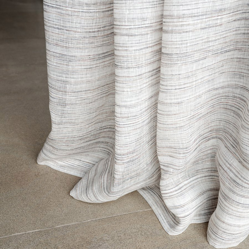 El tejido Study presenta un tejido lustroso que recuerda las superficies nacaradas de las piedras. Este juego de luces está realizado con una cadena de fibra metálica sobre una trama de lino, dando una suave ilusión de movimiento al conjunto. Este modelo de Zimmer + Rhode aporta un toque de elegancia a los interiores.