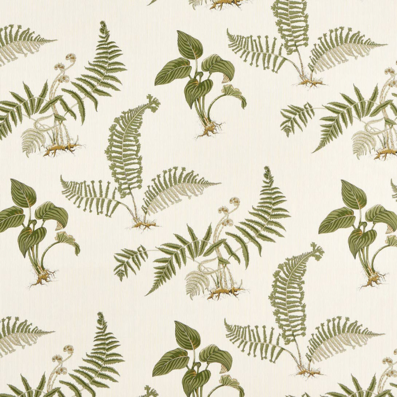 Los helechos y las hostas se entrelazan para formar el patrón botánico del tejido Hosta & Fern Outdoor. Cada hoja destaca sobre un fondo finamente rayado y recuerda a las tradicionales planchas de herbario. Las raíces expuestas y las nervaduras marcadas subrayan una precisión naturalista. Creado por Sanderson, este tejido para exteriores combina belleza vegetal y robustez.