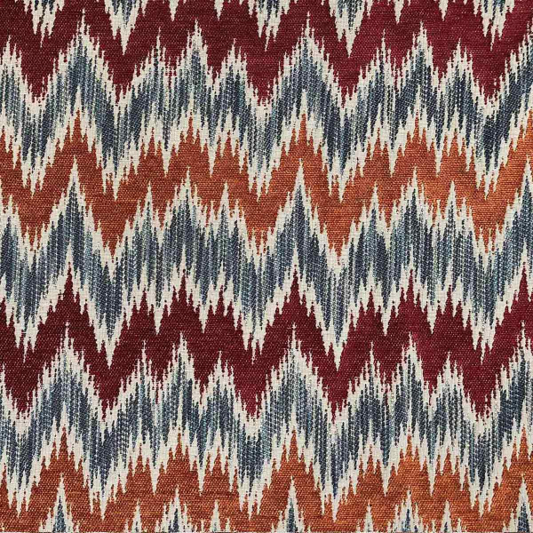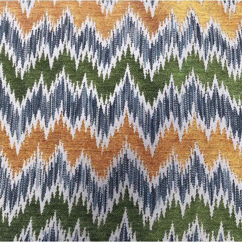 Marvic Textiles presenta Medici, un tejido de tapicería adornado con un estampado ikat geométrico en el que los zigzags irregulares vibran al ritmo de una impresión artesanal. La superficie revela un denso juego de texturas, acentuado por un rico tejido que hace que los colores cobren vida. Cada banda se encadena con regularidad, dibujando una dinámica visual en la que la mirada se pierde en las ondulaciones.