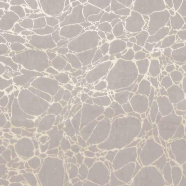 Velvet Marble es un tejido, firmado por Fischbacher, atravesado por un motivo abstracto inspirado en las estructuras naturales. Las líneas sinuosas dibujan una trama fragmentada, como una superficie de piedra fragmentada. Cada contorno parece fluir sobre el fondo liso en una coreografía silenciosa. El conjunto da una impresión de movimiento congelado en una materia suave y mineral.