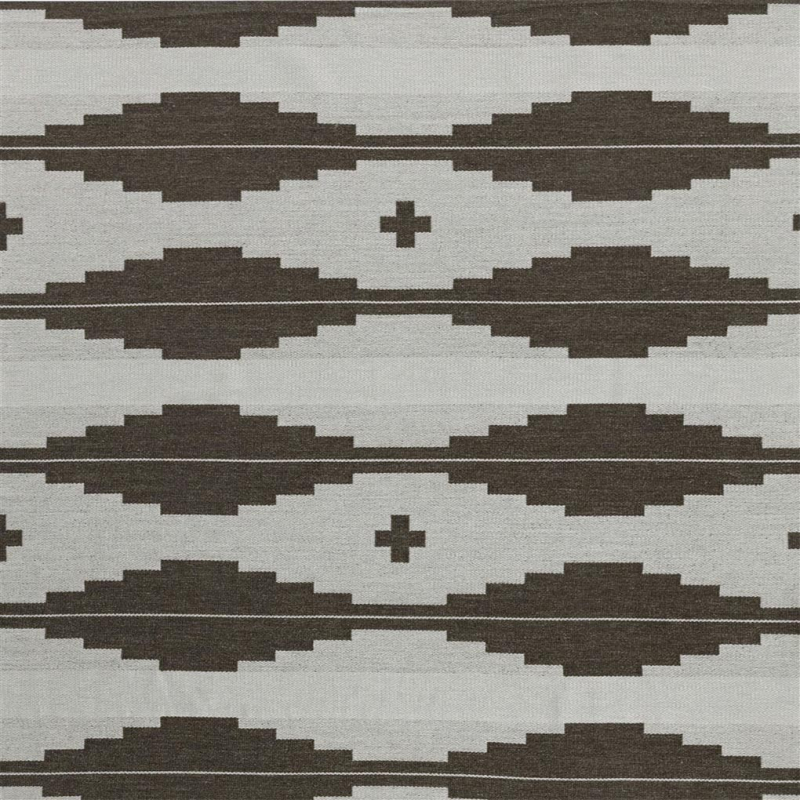 El tejido Keyah transpone un lenguaje visual, inspirado en el desierto americano, en un motivo gráfico de gran rigor. Las figuras escalonadas se alinean horizontalmente, equilibradas por cruces centrales. La composición geométrica juega con la alternancia de zonas claras y oscuras. Diseñada por Designers Guild a partir de una mezcla de fibras, esta creación revela una textura estructurada.