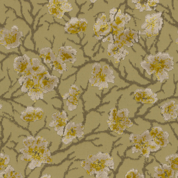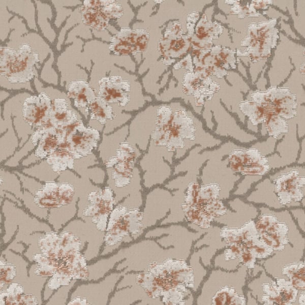 Sobre el tejido Cherry Blossom, una red de ramas desnudas se extiende delicadamente. El motivo floral toma forma en un terciopelo en relieve, donde las corolas estilizadas parecen florecer desde finas ramas. Esta composición, firmada por Zimmer + Rohde, alterna zonas mate y toques luminosos. Un diseño que da lugar a una textura visual en movimiento y sorprendente.