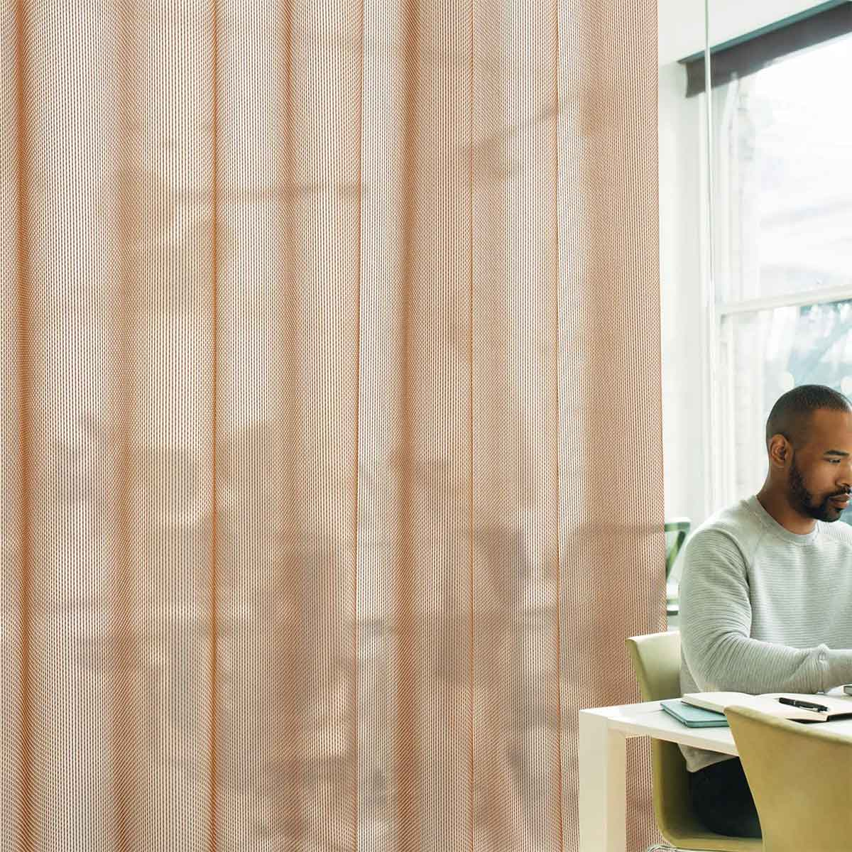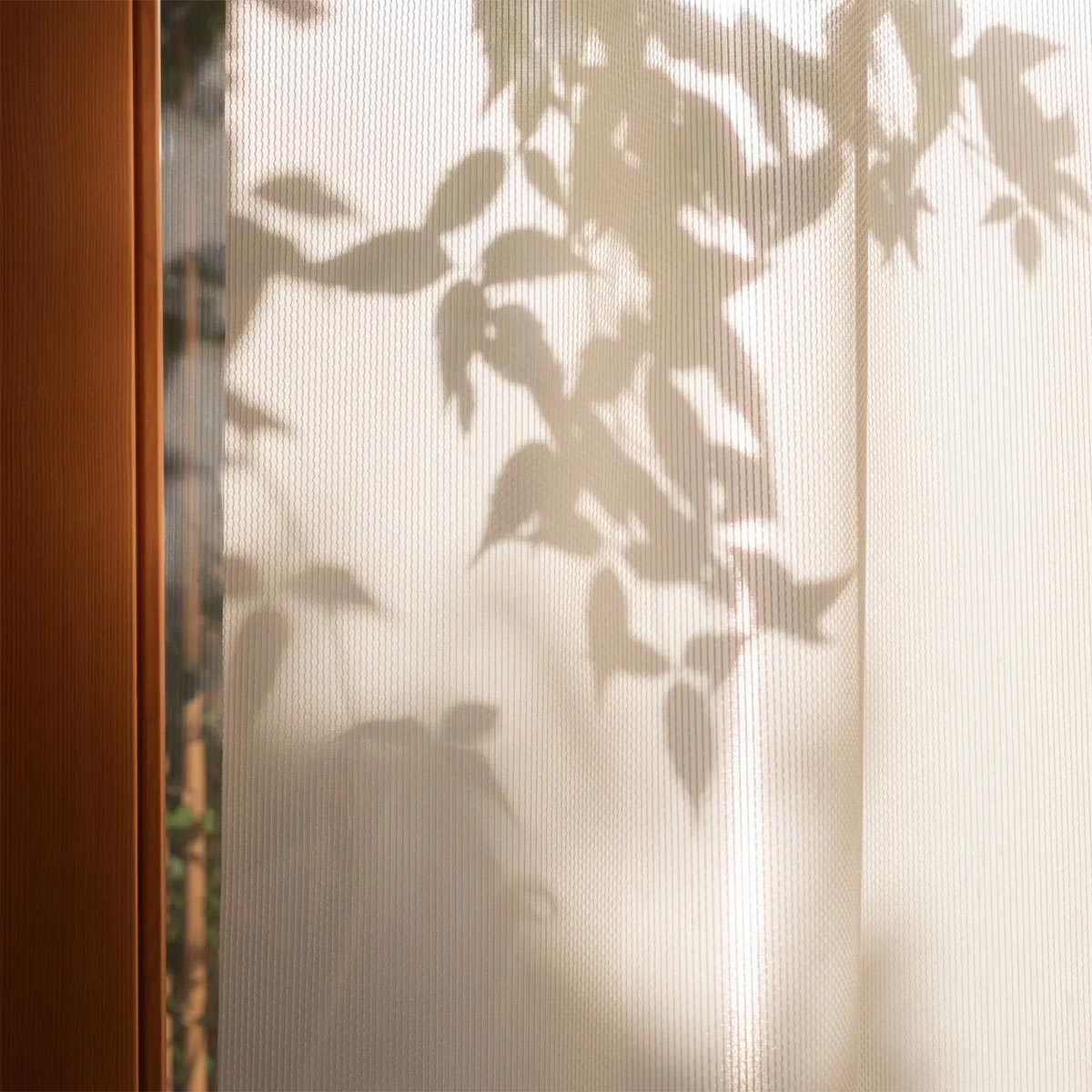 Voile Formoza, un tejido de Vescom, estructura la luz a través de un patrón de rayas delicadamente intercalado con pequeños lunares alineados. El preciso tejido evoca el hilo de un bordado antiguo con una superficie lisa. Cada línea crea un ritmo regular, casi musical, sobre la transparencia de la tela. El orden geométrico revela un sutil juego entre la densidad visual y la ligereza textil.