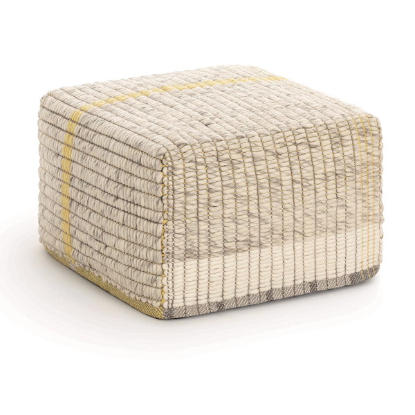 This Reversible pouffe is a creation of Charlotte Lancelot and Gan Rugs. The originality of this model is its new complex hand weaving technique. A combination of yarns of different thicknesses and materials allows a complex and contemporary design. The thickness of the material is an invitation to rest.