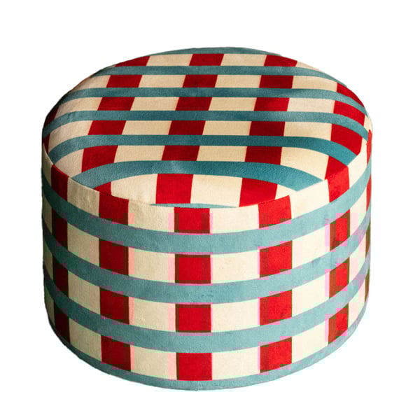 Il pouf Room Service Rosso e giallo è rivestito con un motivo geometrico a righe che richiama l'arte della tessitura. Le linee incrociate formano una griglia netta e impongono una presenza grafica decisa. Il rigore del disegno è ammorbidito dal generoso volume della seduta. Creato da Babel Brune, questo arredo incarna l'equilibrio tra comfort ed espressione visiva.
