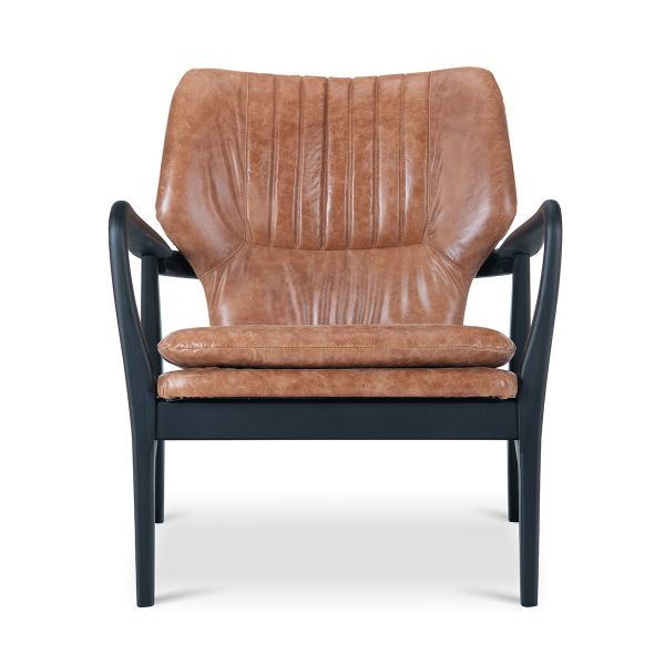Brody Cambridge, una sedia dalle linee pulite, poggia su una struttura in legno dall'eleganza minimalista. La pelle riveste la seduta, lo schienale e il cuscino in una trama marcata, dal carattere autentico. L'imbottitura generosa ammorbidisce gli angoli e rafforza il comfort avvolgente del modello. Il motivo a righe verticali accentua la silhouette grafica di questo modello contemporaneo, modellato da Mindthegap.