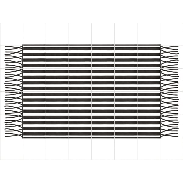 L'architetto Giuliano Andrea dell'Uva immagina, in collaborazione con la casa italiana Francesco de Maio, la composizione di piastrelle in ceramica lucida Carpet Bordure BL 1. Realizzate e dipinte a mano in Italia, queste lastre laterali di 20 centimetri si incastrano per creare un grande piano o tappeto a righe. Circondato da un generoso bordo bianco e rifinito con frange incrociate, questo tappeto in ceramica ha un'aria giocosa e contemporanea.