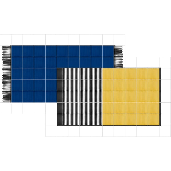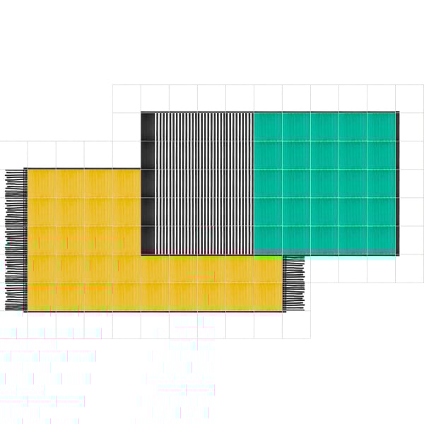 Il tappeto double large è un'incredibile creazione dell'architetto Giuliano Andrea dell'Uva in collaborazione con la casa italiana Francesco de Maio. Una volta assemblate, le tessere quadrate da 20 centimetri formano due grandissimi tappeti sovrapposti. Si forma quindi un gioco di opposizioni di strisce dipinte a mano e aree piatte, che portano il gesto preciso del pennello dell'artigiano. Questa composizione unica si presta con fantasia ai più grandi progetti di decorazione.