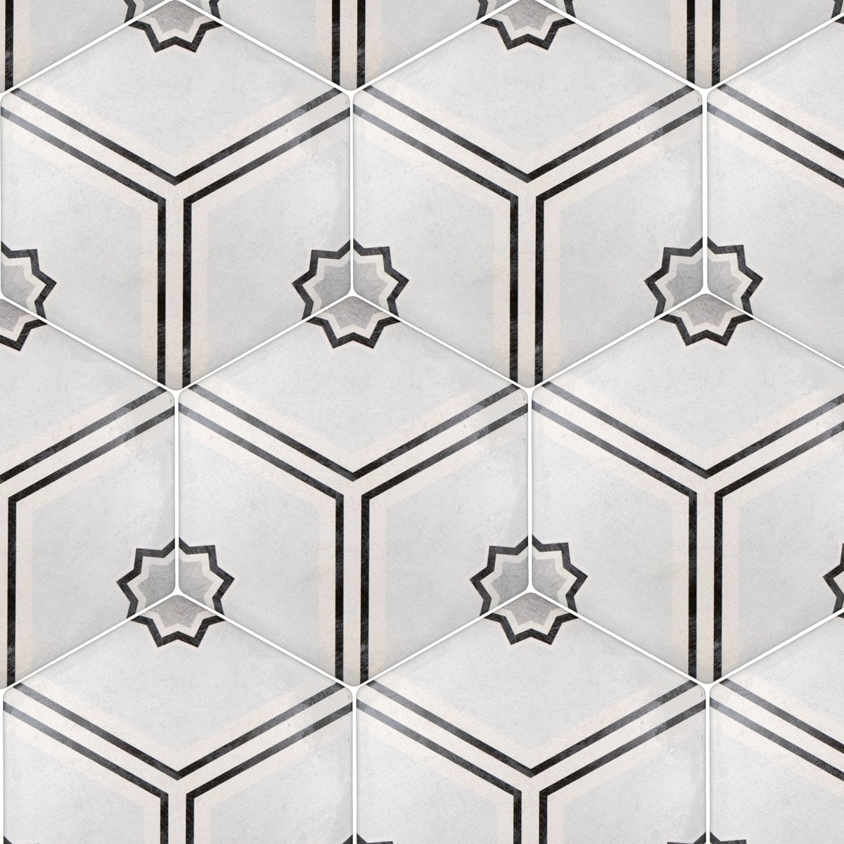 Progettata da Nanda Tiles, la piastrella in gres porcellanato Kristy è caratterizzata da un motivo grafico dalle tonalità a contrasto. Su uno sfondo dalle sfumature tenui, le linee nere sono delicatamente disposte a formare un esagono con una stella stilizzata al centro, una volta assemblate le tessere. Questa piastrella raffinata si abbinerà a progetti di arredamento classici e moderni.