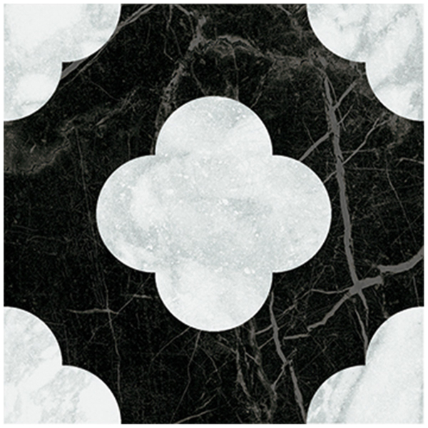 Elegante e grafico, il gres porcellanato Pin combina uno sfondo nero intenso con motivi floreali in marmo bianco, creando un contrasto sorprendente. Il suo design raffinato conferisce un tocco sofisticato agli interni contemporanei. Ideale per pavimenti e pareti, conferisce carattere e modernità agli spazi che decora.