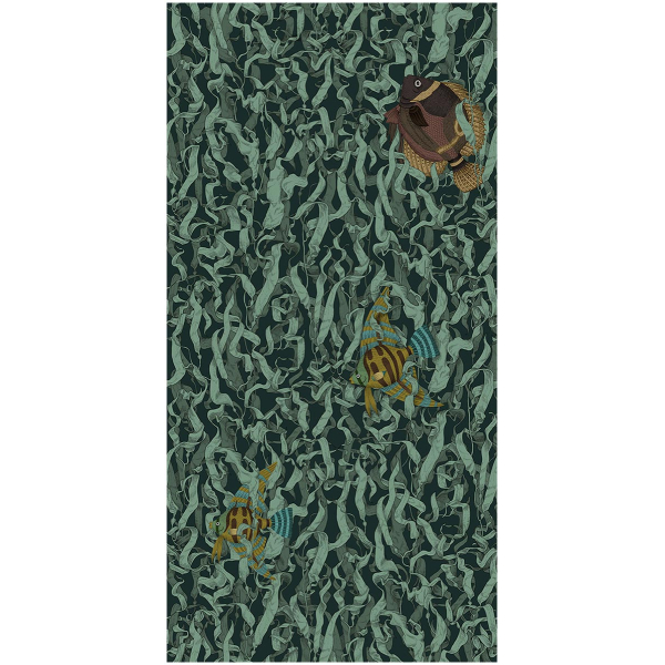 La piastrella in gres porcellanato Seaweed a lastra grande presenta un universo sottomarino stilizzato. Pesci dalle squame finemente disegnate scivolano attraverso una fitta foresta di alghe dalle forme ondulate. Il motivo vegetale marino si estende in nastri fluttuanti e il movimento fluido anima la superficie in un formato maestoso. Bardelli inscrive nel materiale la poesia silenziosa delle profondità.