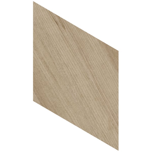 La piastrella in gres porcellanato Bridge Rombo esplora le forme geometriche senza rompere con l'organico. La trama lineare, orientata in diagonale, simula le fibre del legno levigate con regolarità. Il motivo ripetuto disegna una superficie continua e ritmata, animata dalla morbidezza delle striature. Questo modello progettato da Fioranese unisce precisione grafica e illusione naturale in un'estetica sobria.
