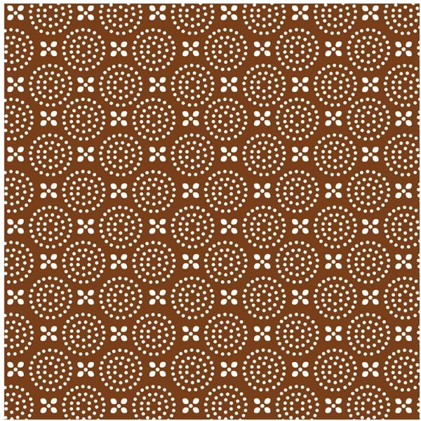 Il gres porcellanato Japan Rust è una piastrella il cui motivo decorativo si ispira alle ceramiche giapponesi. Una sequenza di cerchi punteggiati disegna un pizzo grafico sulla superficie. Questo modello presenta una trama che cattura la luce in un delicato incontro tra opacità e riflessi metallici. La composizione del disegno crea un'impressione di profondità e suggerisce una presenza ritmata.