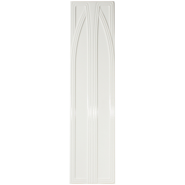 Prodotto da Ceramiche Grazia, il gres porcellanato Belvédère rivela una silhouette scultorea ispirata all'architettura gotica. Linee sottili si snodano in archi sottili, scolpendo la superficie con discreta eleganza. Il motivo geometrico sobrio e grafico completa il formato allungato della piastrella. Realizzato in gres porcellanato, questo battiscopa unisce resistenza e precisione artigianale.