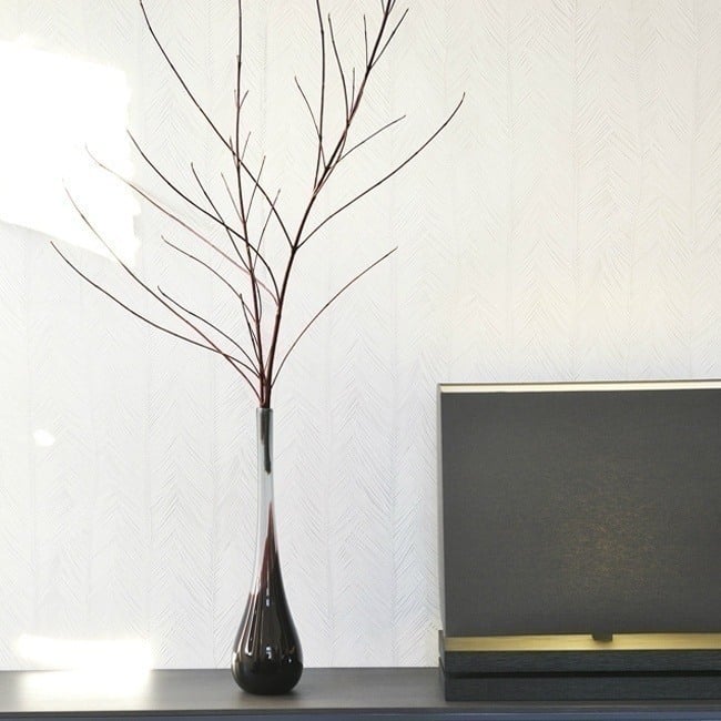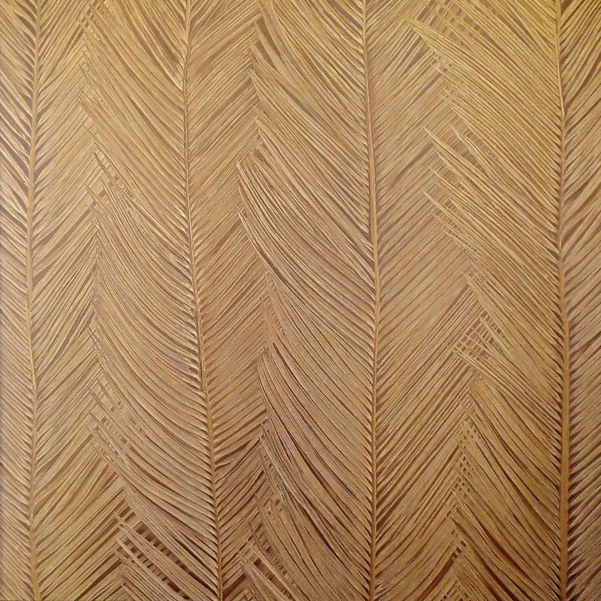 Rivestimento murale prodotto da Arte, Itaya è caratterizzato da un motivo di foglie di palma che formano una cortina di grandi foglie verticali. Il disegno tono su tono è realizzato in rilievo con eccezionale finezza.