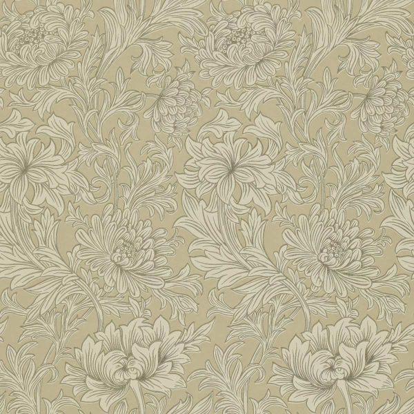Progettata da Morris and Co, Chrysanthemum Toile è una carta da parati caratterizzata da un sontuoso motivo floreale. Questo capo presenta fiori e foglie di crisantemo, una pianta ornamentale autunnale che simboleggia l'immortalità in Asia.