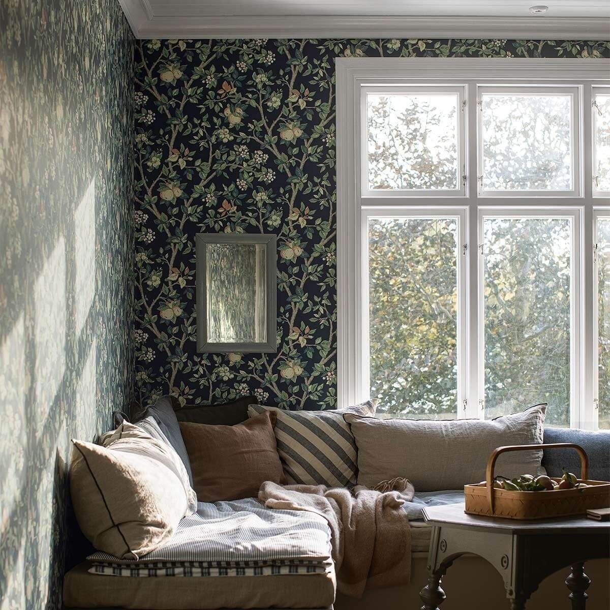 Laureata alla Scuola svedese di tessuti, la designer Jenny Hahne Gadd dipinge a mano il motivo per la carta da parati Ingrid Marie. Questo rivestimento murale raffigura un melo nelle diverse fasi del suo ciclo stagionale, con i suoi germogli e i suoi frutti in maturazione. Questa creazione piacevole al tatto di Borastapeter è disponibile nei toni chiari e scuri.