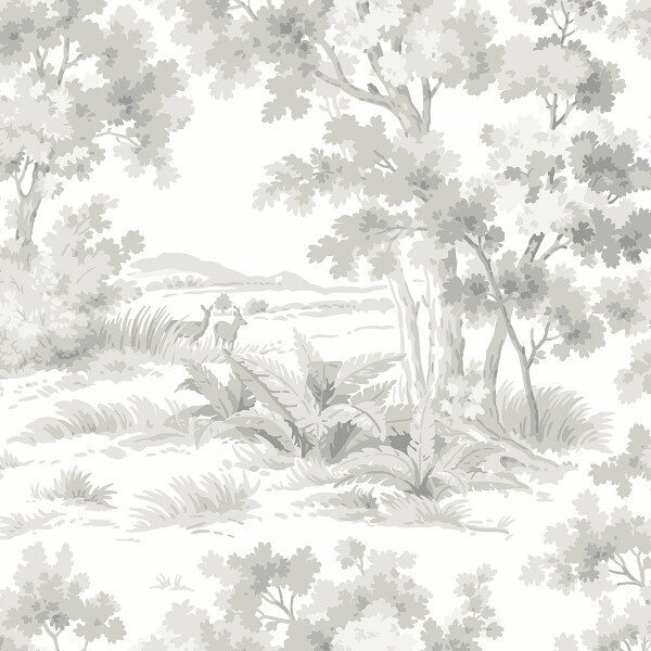 Realizzato con una tecnica di stampa tradizionale, il motivo della carta da parati Countryside Morning presenta un effetto leggermente in rilievo. Presenta un design country ripetuto costituito da una radura circondata da alberi con una coppia di cervi sullo sfondo. Questo rivestimento murale è disponibile in una tavolozza di colori neutri.