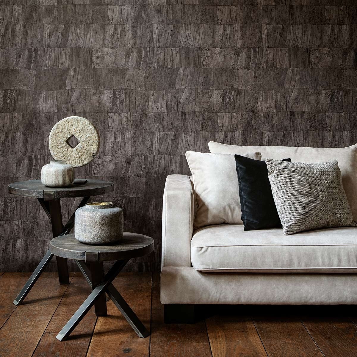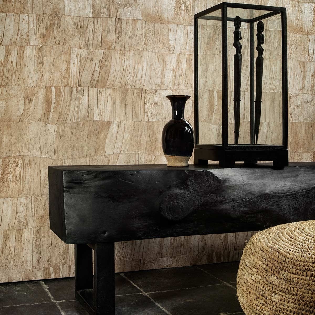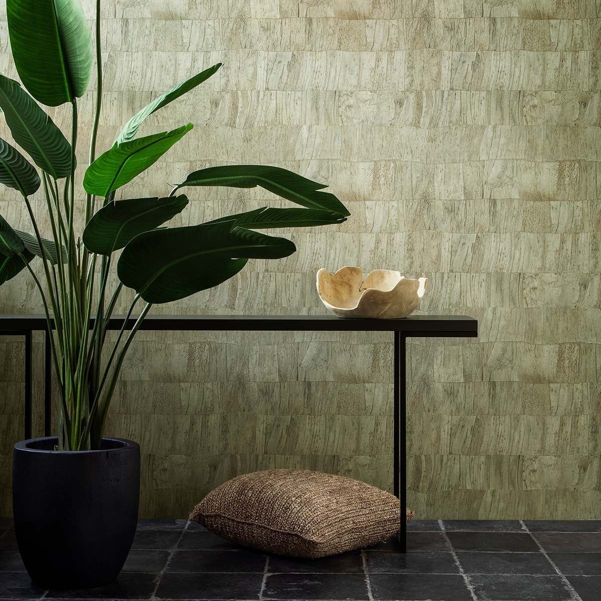 Ricordando la sezione trasversale di un pezzo di legno, questa carta da parati rappresenta foglie di banano aggrovigliate. Le sfumature delle fibre sono tradotte da un gioco di ombre e luci. Arte sceglie di proporre questo rivestimento murale in colori naturali che donano un'energia particolarmente rilassante al vostro spazio.