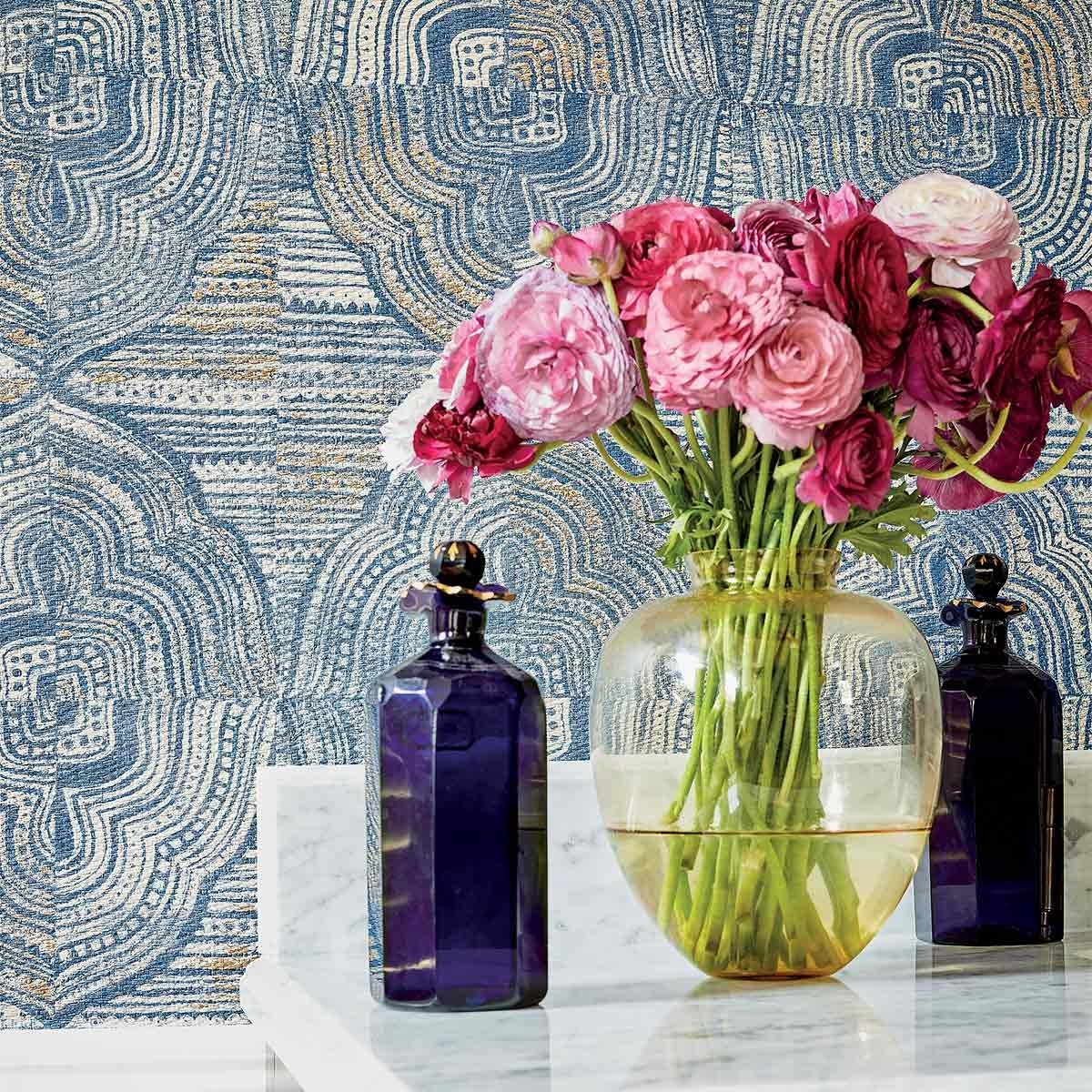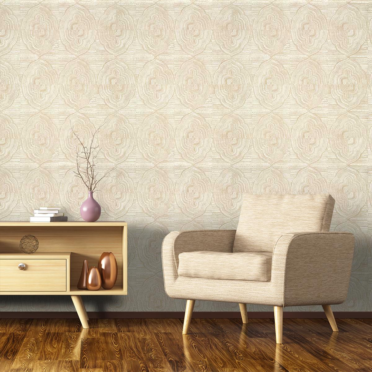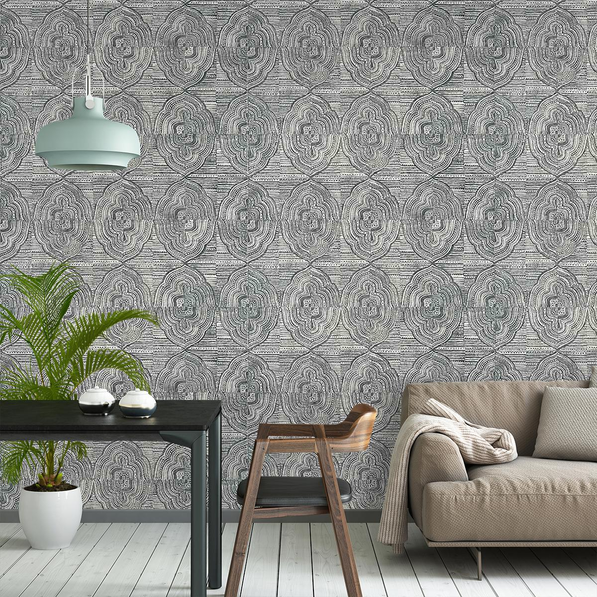 La carta da parati Kalahari presenta un design a cartuccia in una tavolozza monocromatica. Composto da un supporto in vinile goffrato per creare un effetto strutturato, mette in risalto un design folcloristico della cultura orientale. Le linee sottili di questa illustrazione aggiungono una resa autentica.