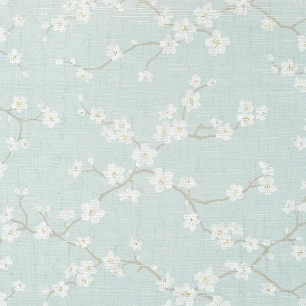 Offerto da Thibaut Design, il rivestimento murale Sakura mostra un motivo floreale di fiori di ciliegio su uno sfondo semplice. Questo disegno romantico ispirato a un simbolo della cultura asiatica è stampato su carta tessuta per creare una finitura tessile. Questo modello a tema orientale fa parte della collezione Dynasty.