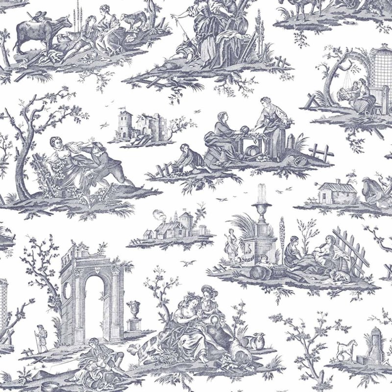 Con stampa toile de Jouy, questa carta da parati pubblicata da Charles Burger porta il nome di Fragonard, maestro della pittura rococò, noto per le sue rappresentazioni galanti e frivole. Questo rivestimento murale presenta scene pastorali e romantiche che mescolano personaggi, natura ed elementi architettonici.