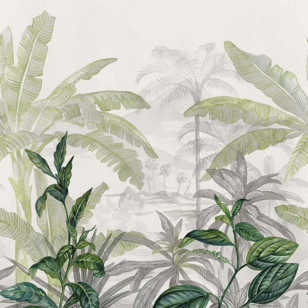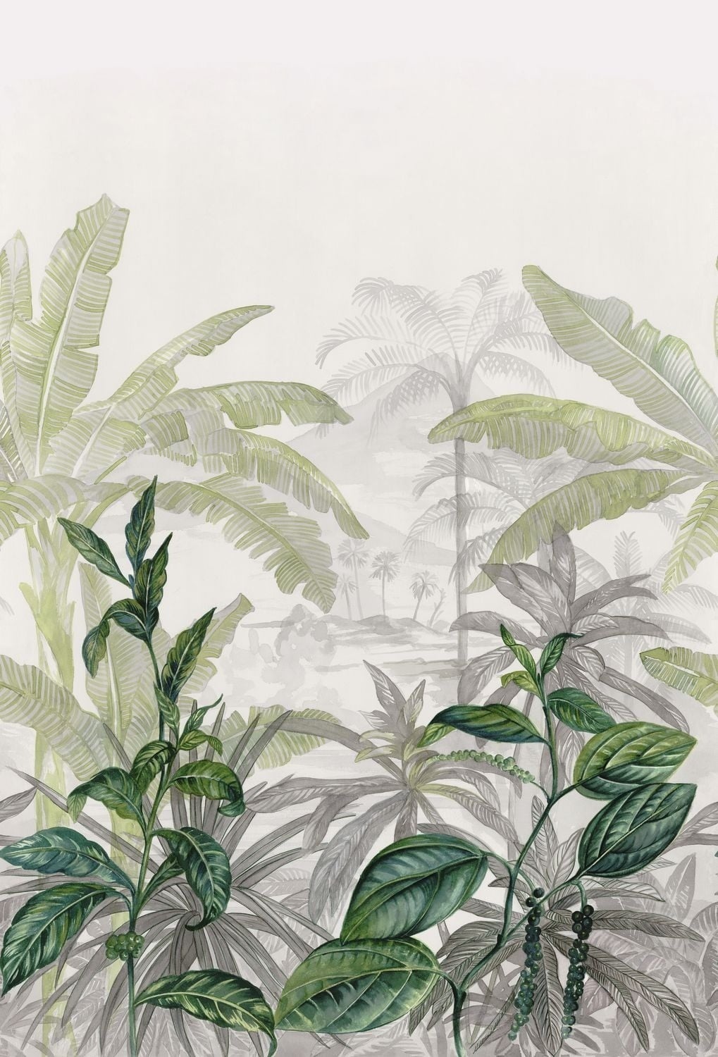 Il pannello Oléa offre un viaggio nel cuore di un paesaggio paradisiaco esotico. Lavorato per sovrapposizioni, il primo piano si apre su liane dalle grandi foglie e dal disegno preciso. In lontananza possiamo vedere, attraverso una foresta di banani e palme, un'isola e un vulcano più delineato. La ricchezza e la trasparenza del disegno, il lavoro ad acquerello dei diversi piani offre prospettiva e profondità consentendo un'immersione totale.