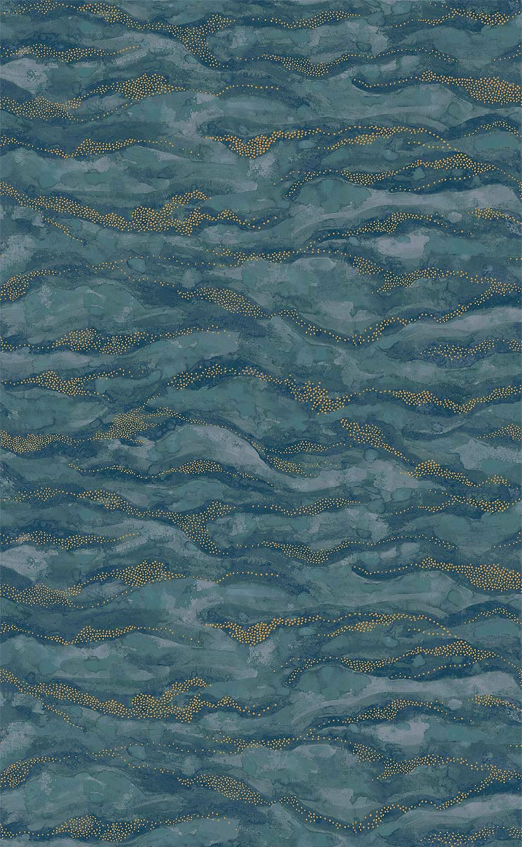 Come un acquerello, il motivo astratto della carta da parati Sohar di Casamance presenta colori leggermente sbiaditi. Le sfumature approfondite e ammorbidite formano grandi figure di onde, evocando l'aspetto tempestoso del mare. Alcuni tocchi metallici sottolineano le ondulazioni di questa illustrazione. Il set presenta un design misterioso e rinfrescante.