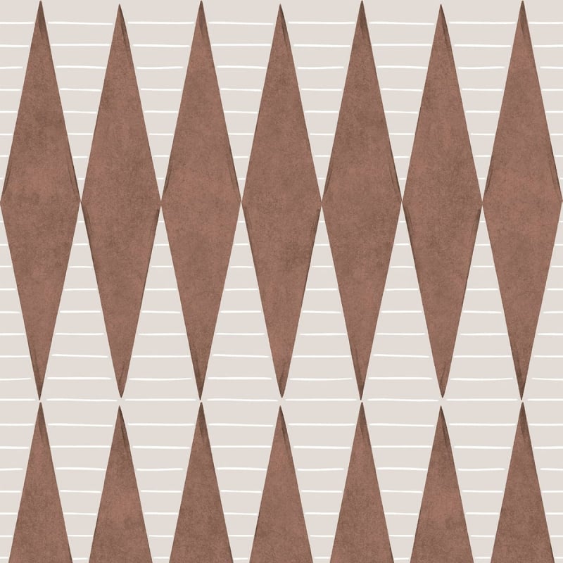 Fregi a rombi e strisce orizzontali compongono il motivo della carta da parati Warrior di Coordonné. Progettato dal designer spagnolo Coqui Ybarra, questo disegno con sfondo semplice combina uno stile classico e grafico. È disponibile in una scelta di colori tenui che donano un tocco rilassante agli spazi abitativi.