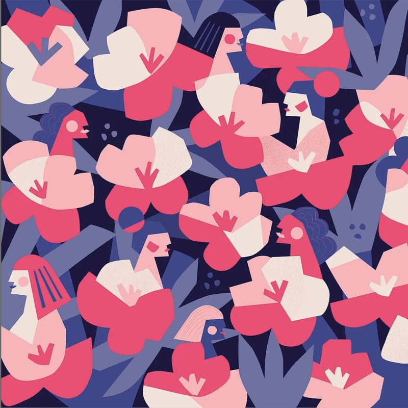 Con questa composizione grafica immaginata con colori vivaci, l'illustratrice francese Claire Prouvost celebra le donne e il loro sviluppo personale. Animata dalle forme spigolose dei dipinti cubisti dell'inizio del XX secolo, disegna ritratti femminili in mezzo a un'abbondante vegetazione. Questa creazione illumina i tuoi spazi e apporta un tocco colorato e poetico all'arredamento.
