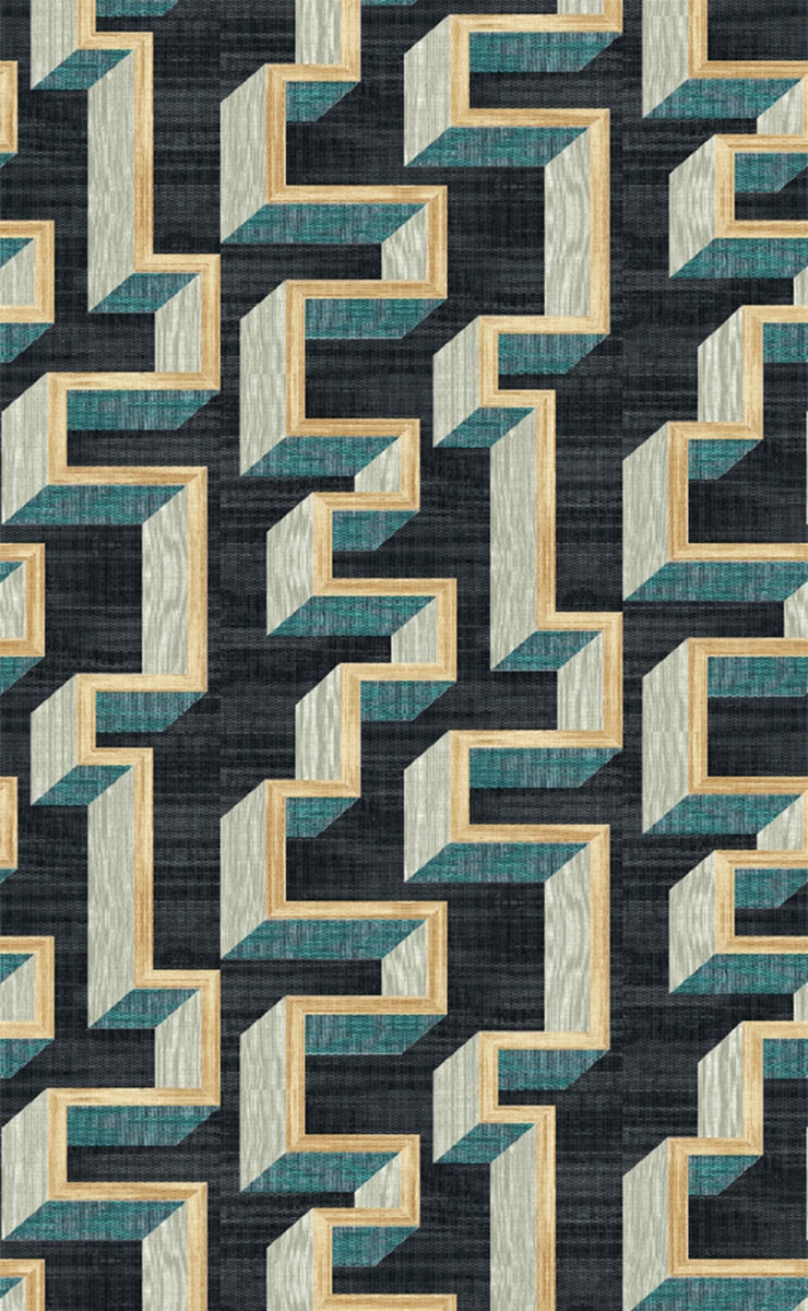 Il motivo grafico del rivestimento in sisal Detour evidenzia un labirinto disegnato con un gioco di colori chiari e scuri. Questa scelta di colori accentua le linee di questo disegno, aggiungendo un'illusione di rilievo all'insieme. Progettata da Arte, questa decorazione murale dona un tocco moderno agli spazi abitativi.