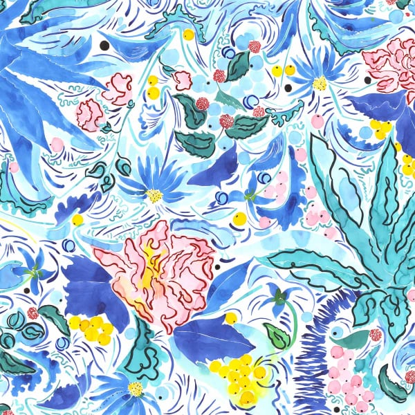 Dipinto con inchiostro in una tavolozza di colori vivaci e scintillanti, il motivo della carta da parati panoramica Nouzhat è una creazione di Claire de Quénetain. Ispirandosi alla flora esotica dei giardini marocchini, l'artista francese ha creato questa composizione grafica giocando con le forme, le linee e le sfumature colorate offerte dal mezzo utilizzato. Questo rivestimento murale veste le tue pareti con un'esplosione di colore e dona una nota gioiosa ai tuoi interni.