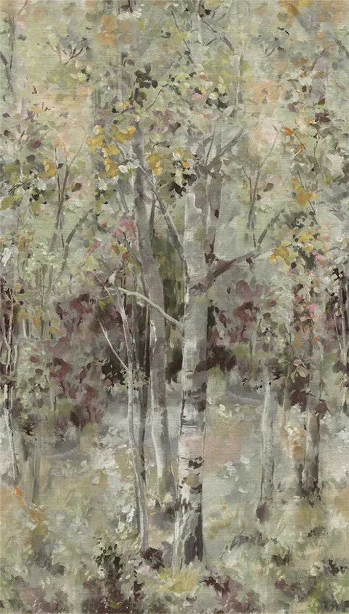 La carta da parati panoramica Sisal Birch Wood offre un'immersione nella bellezza onirica di un bosco di betulle argentate. Come una tela impressionista, evoca la morbidezza della natura con le sue piante abbondanti e il suo sfondo scuro. Firmato Designers Guild, questo set trasforma le pareti in un affresco coinvolgente e altamente decorativo.