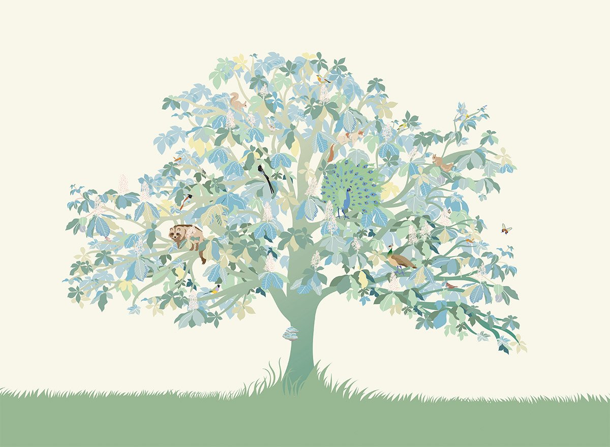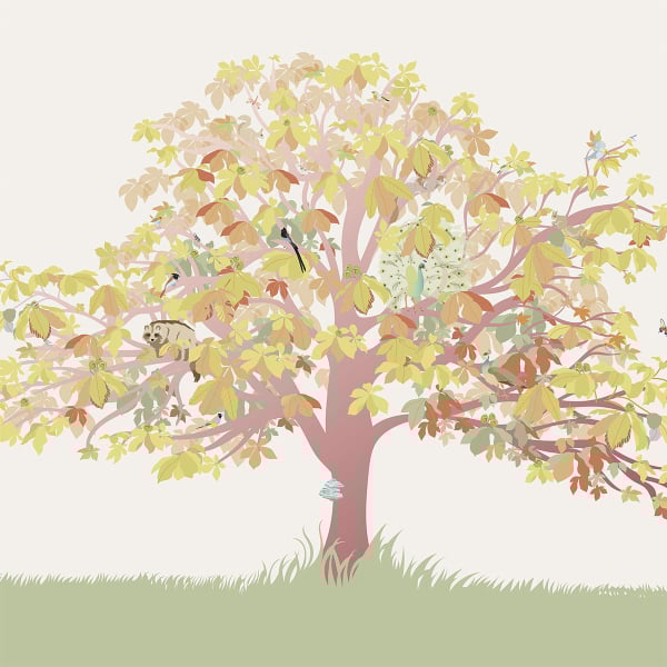 Il decoro panoramico Ki rivela la maestosità di un castagno, santuario animato da una miriade di esseri viventi. Le sue foglie, ornate da variegate sfumature, si intrecciano creando un affresco multicolore, vibrante e dinamico. I colori accuratamente selezionati dall'editore sembrano essere una celebrazione vivente delle stagioni. Evocano i toni caldi dell'autunno e la morbida tavolozza ghiacciata dell'inverno.