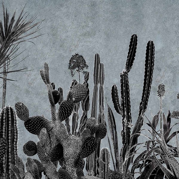 La carta da parati Lanzarote, un modello panoramico di Inkiostro Bianco, raffigura il paesaggio di un'isola spagnola da cui prende il nome. La designer Giorgia Ricci propone qui una vegetazione di cactus e palme, facendoci sognare la bellezza delle terre aride. I colori sono leggermente tenui, per evocare la freschezza del deserto a fine giornata.