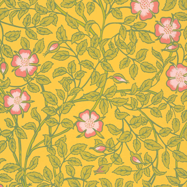La carta da parati Briar Rose, prodotta da Little Greene, ravviva le pareti con i suoi cinorrodi con fiori sottili e foglie vorticose. Questo cespuglio di rose selvatiche, che spesso emerge dai rovi e dal sottobosco, qui è privo di spine. Incarna la fragilità della Bella Addormentata, personaggio che appare nel modello originale disegnato da Walter Crane nel 1879.