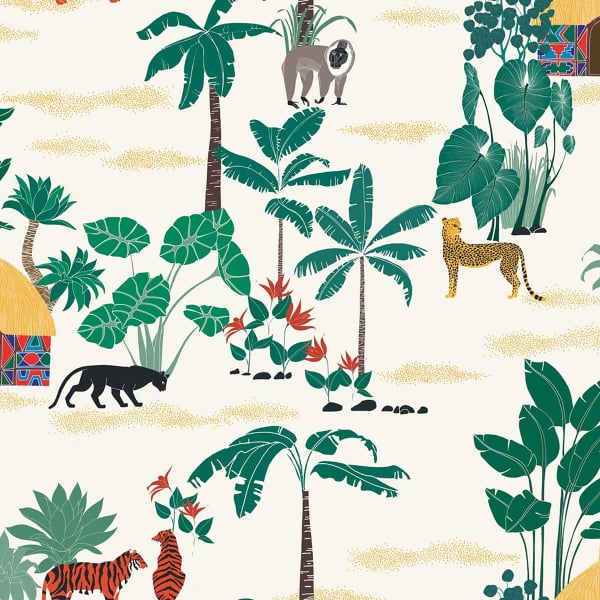 La carta da parati Pépo ci trasporta in un incanto selvaggio, una fuga incantata attraverso le terre di un safari infantile. Qui specie vegetali e animali, provenienti dai quattro angoli del mondo, si incontrano in un villaggio immaginario. Opera prodigiosa della casa Emane, è creata con le note vibranti della tempera, offrendo una tavolozza di versioni, a volte monocromatiche, a volte multicolori.