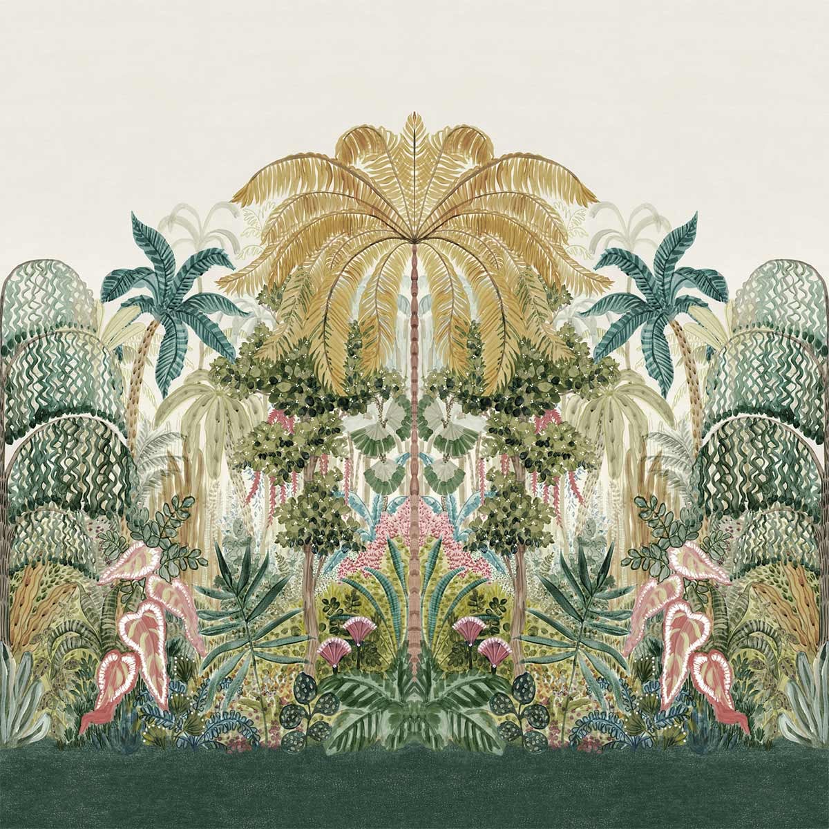 La carta da parati panoramica Mombasa rende omaggio alla rigogliosa flora a nord dell'omonima città costiera in Kenya. L'area, un tempo una terra desolata inquinata dalla fabbrica di cemento, ora ospita una giungla di palme e alberi autoctoni. Clarke & Clarke suggeriscono di trasformare le pareti in questa immagine verde, tradotta artisticamente sotto i pennelli di Breegan Jane.