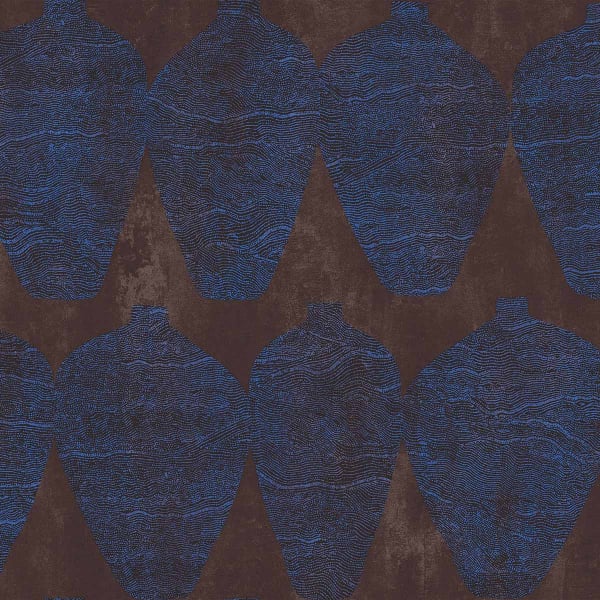Di forme svariate, i vasi primitivi dalle texture scabre di Hemia sembrano cantare in coro. Si allineano su uno sfondo patinato che evoca un vecchio muro e risaltano con una leggera lucentezza. Firmata Masureel, questa carta da parati prende in prestito colori che ricordano l'atmosfera infuocata delle terre orientali.