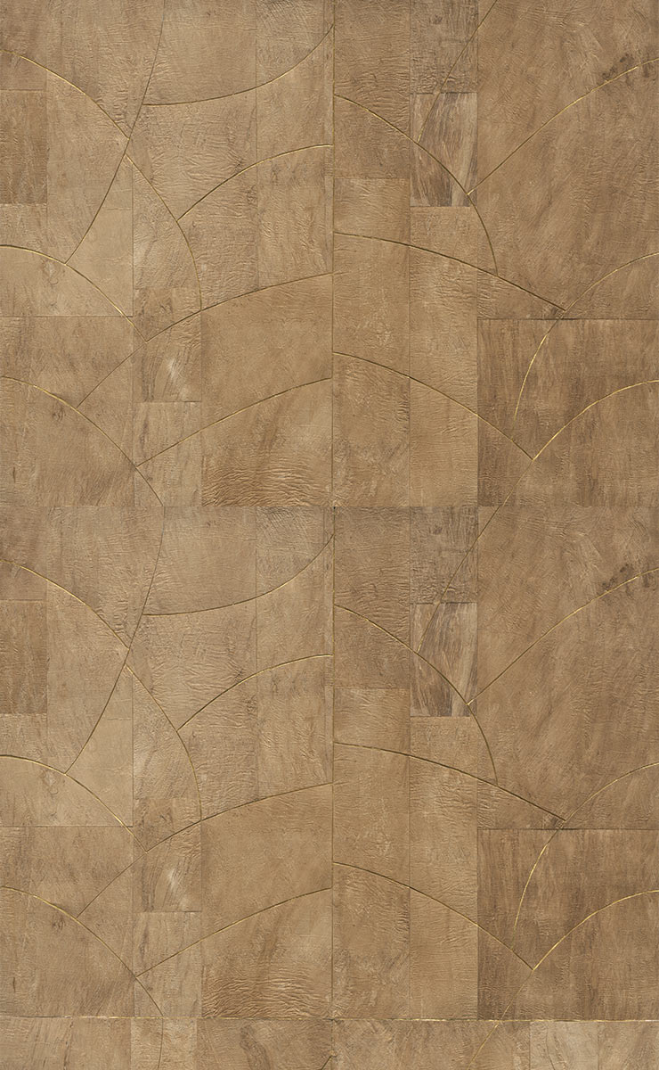 Rubra de Arte è un rivestimento murale in corteccia di gelso rosso. Le ampie strisce, non sbiancate, seducono con la loro consistenza squamosa. Il loro colore naturale conferisce inoltre un attraente effetto tonale alla tinta. I pezzi vengono poi assemblati con uno spazio tra loro, per rivelare il loro supporto argentato o dorato. Sembrano così collegate da un metallo prezioso, un dettaglio che dona lucentezza e un tocco kintsugi all'insieme.