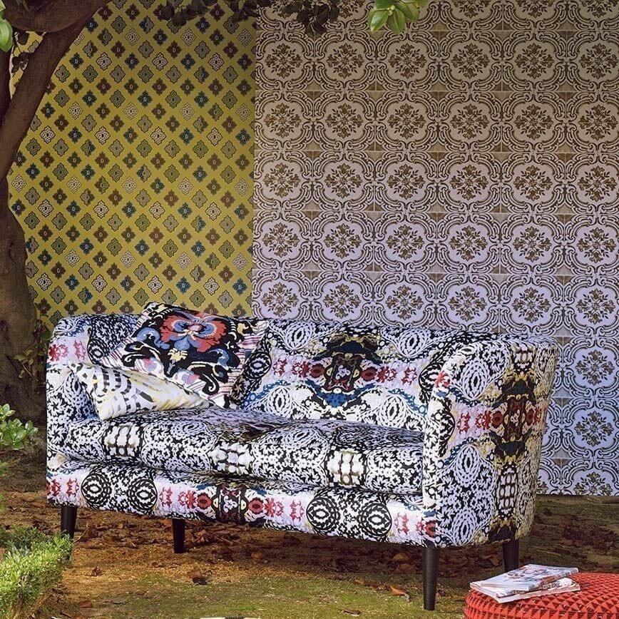 Azulejos di Christian Lacroix è una carta da parati dal design retrò di grande successo. La resa fotografica di questi motivi ornamentali accentua ulteriormente l'effetto antico. Disponibile in una gamma di colori vivaci, a volte metallici.