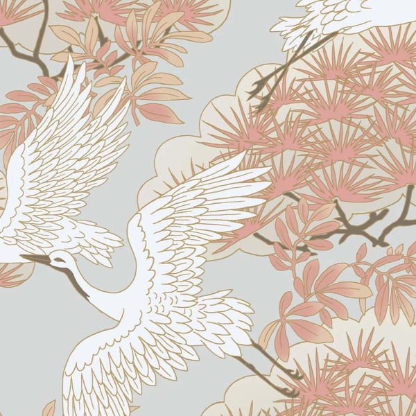 La carta da parati Sprig and Heron disegna un paesaggio intriso di simbolismo orientale. Il motivo botanico raffigura gru in volo, con le ali spiegate. Una proliferazione di pini nuvolosi e foglie stilizzate compone un arredo denso, dai contorni metallizzati. Questa creazione di York emana serenità, tra equilibrio naturale e movimento sospeso.