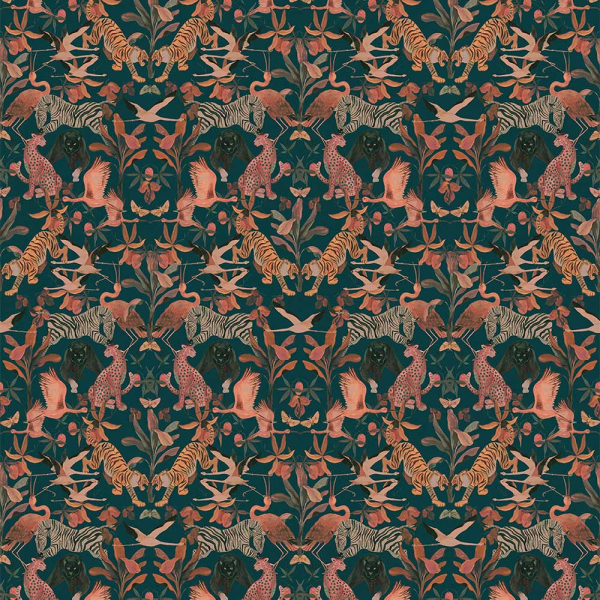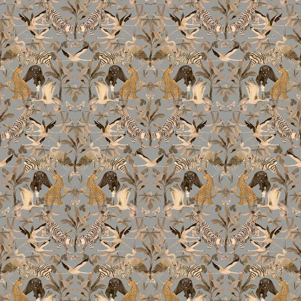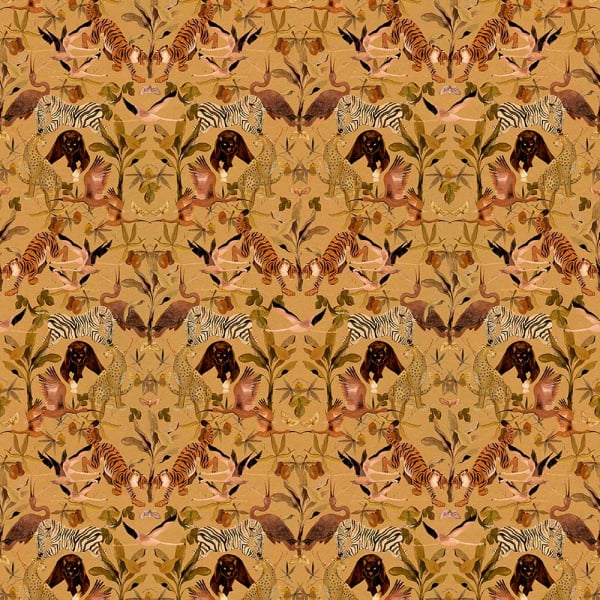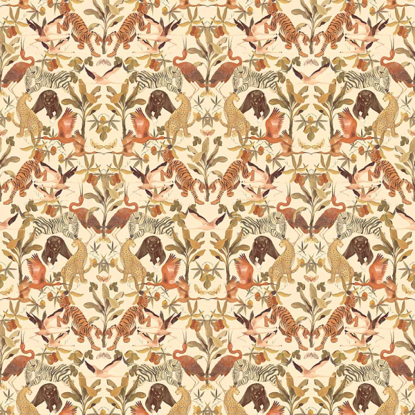 La carta da parati panoramica Échappée Sauvage espone un motivo giungla ricco e rigoglioso, popolato da animali selvatici, uccelli tropicali e fogliame ondulato. Gli animali si evolvono in un universo sospeso, tra natura onirica e bestiario illustrato. Ogni dettaglio rivela la finezza del disegno a mano, dai graffi felini al piumaggio brillante. Progettata con un approccio rispettoso dell'ambiente, questa creazione porta la firma di Initiales.