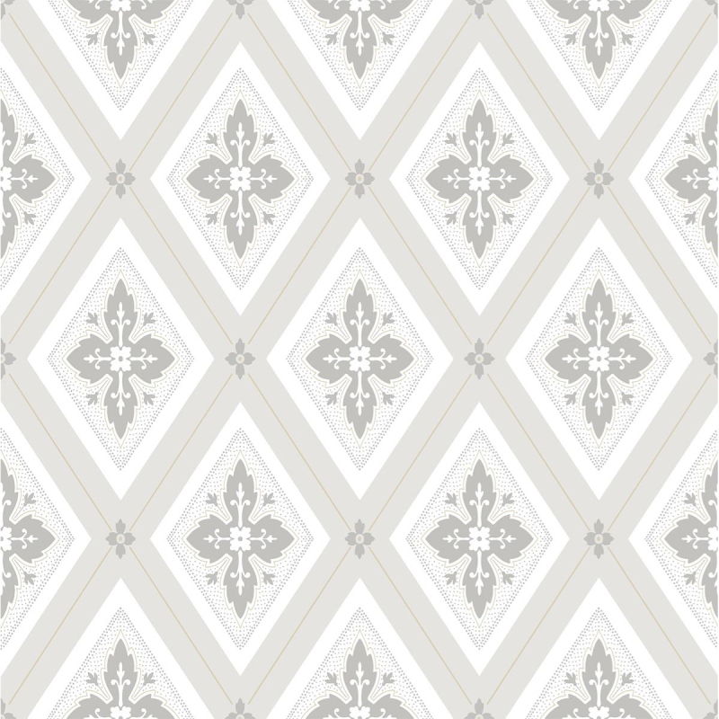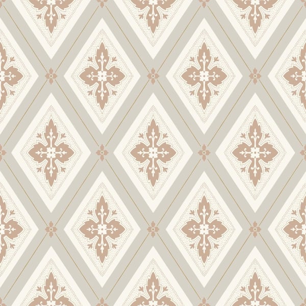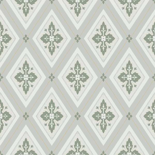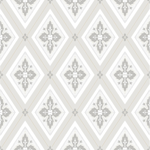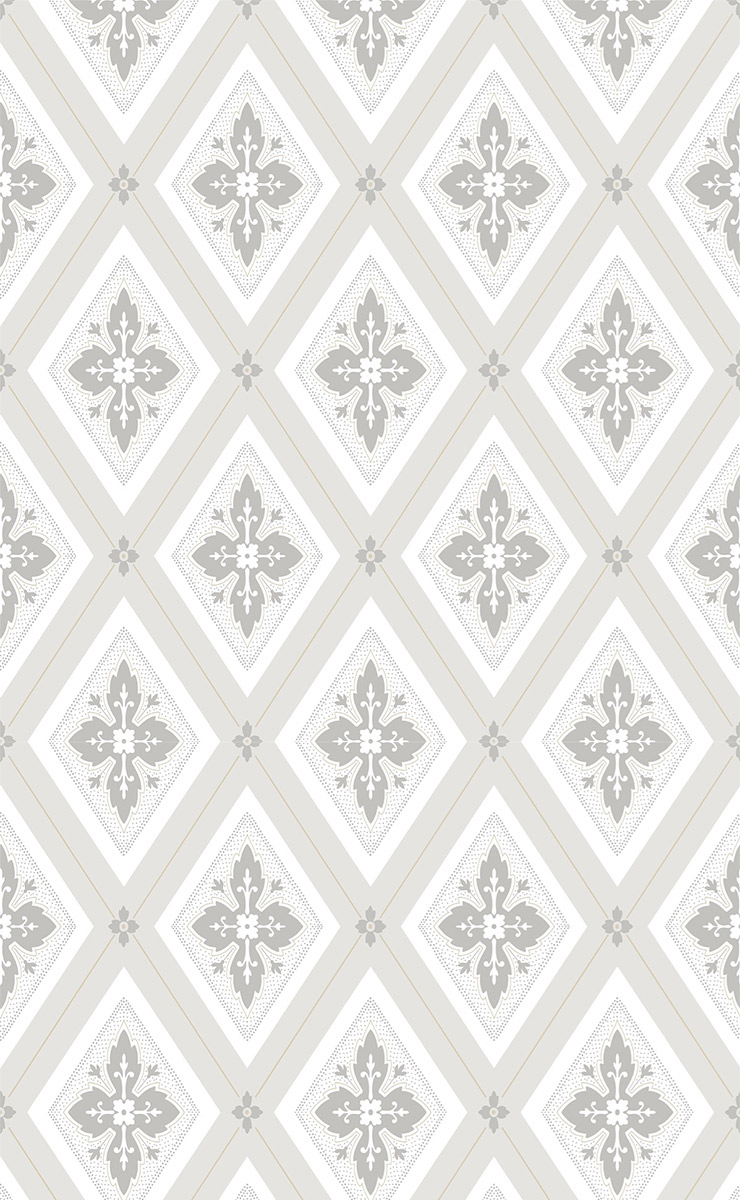Astrid Flora dispiega un elegante ritmo di rombi che racchiudono ornamenti vegetali stilizzati. Questa carta da parati firmata Düro presenta un decoro geometrico ispirato al damasco, con arabeschi ammorbiditi da accenti tradizionali. La griglia simmetrica, sottolineata da sottili linee tratteggiate, si anima di intersezioni floreali che conferiscono rilievo al disegno.
